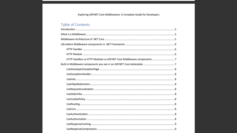It is 23 pages loaded with just the information you need to know about Middlewares.